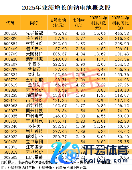 据数据宝统计,事迹数据方面,按照年报、事迹快报、预报净利润下限(无下限则取公告数值)野心,2025年净利润同比增长(含扭亏为盈)的钠电板认识股有25只。其中8股净利润扭亏为盈,包括五矿新能、天原股份、杉杉股份、多氟多、鹏辉能源、传艺科技等。