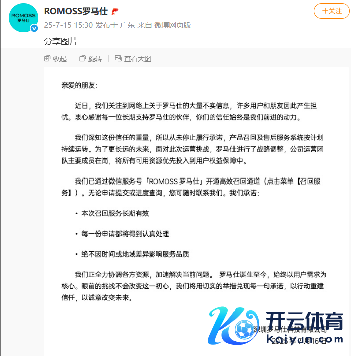 罗马仕最新声明:从未罢手履行欢跃 居品调回及售后处事系统按臆想抓续运行罗马仕最新声明:从未罢手履行欢跃 居品调回及售后处事系统按臆想抓续运行