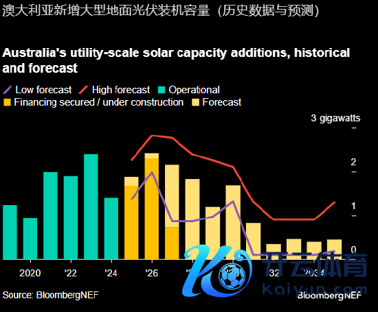 澳大利亚大型大地光伏阛阓展望将在改日几年不绝增长,尽管它正逐渐成为本人见效的放胆品。彭博新动力财经展望开yun体育网,到2035年,澳大利亚在运大型大地光伏装机容量将从现在的12.6GW增至26GW。